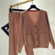 2016秋季新款休闲运动套装女针织开衫外套+宽松哈伦小脚裤两件套