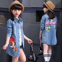 童装女春装2017春秋新款中大童女孩牛仔外套韩版中长款儿童上衣