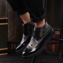 新款英伦布洛克高帮鞋男士厚底增高皮靴复古马丁靴青年短筒男靴子