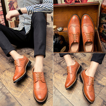 夏季英伦布洛克男鞋青年发型师厚底潮鞋男士韩版尖头正装休闲皮鞋