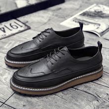 夏季英伦尖头套脚休闲皮鞋男士韩版发型师布洛克潮鞋青年厚底男鞋