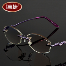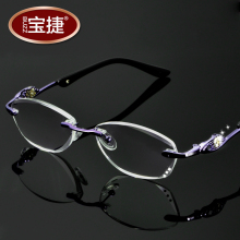 宝捷老花镜女时尚超轻薄抗疲劳无框镶钻切边防辐射优雅老光眼镜