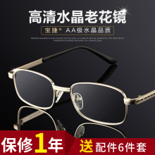 宝捷水晶老花镜男女折叠便携高清AA级东海水晶时尚抗疲劳老光眼镜