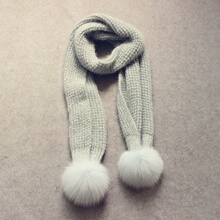 新款秋冬季马海毛针织狐狸毛球长款围巾围脖女冬季保暖可爱日系