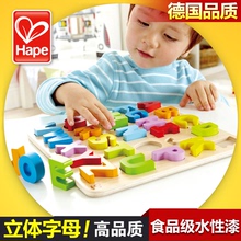 Hape立体数字字母拼图 1-2-3岁宝宝益智玩具 儿童木制早教手抓板