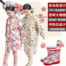2016新款大花印花透明帽檐女宝宝儿童雨衣雨披学生雨衣带书包位