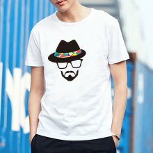 2017夏装纯棉圆领印花短袖t恤男帽子眼镜潮男半袖个性简约短袖