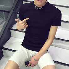 夏季短袖男士t恤韩版潮流修身圆领弹力打底衫社会小伙紧身半截袖