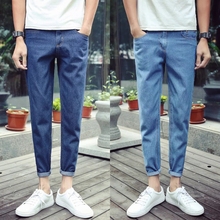 夏季日系男士小脚裤韩版青年直筒束脚牛仔裤收口哈伦裤男紧腿裤潮