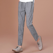 韩版竖条纹女裤秋款新款宽松休闲棉麻哈伦裤女士长裤子秋季2016潮