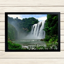 风景山水画桂林山水现代装饰画风水瀑布墙贴画客厅表裱框大幅海报