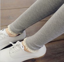 秋冬韩版甜美蕾丝花边打底裤纯棉弹力显瘦女外穿长裤小脚铅笔裤潮
