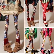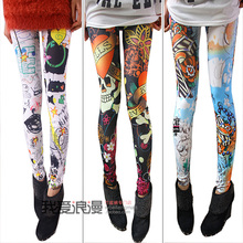 字母人头印花高弹力显瘦打底裤 女春秋夏九分涂鸦裤薄小脚裤2013