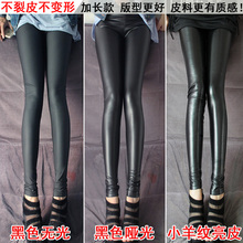 加长哑光小羊纹PU皮裤打底裤铅笔显瘦亚光光面高腰雾面春秋加绒薄