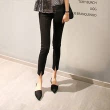 秋装新款女装修身开叉纯色打底九分小脚裤 休闲裤 外穿薄款铅笔裤