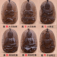 天然黑曜石吊坠男士项链大日如来普贤虚空藏观音菩萨本命佛守护神
