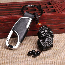 高档汽车钥匙扣挂件天然黑曜石貔貅保平安情侣饰品创意包挂饰男女