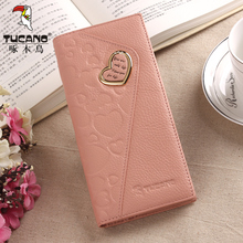 啄木鸟钱包女士长款牛皮钱夹真皮手拿包薄款女包日韩小清新大钞夹