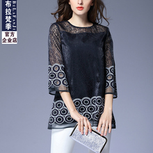 胖mm夏装蕾丝衫加肥加大码女装2017新款宽松显瘦印花七分袖上衣潮