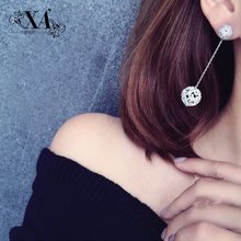 定制立体镂空纯银大小球耳钉女长款银针双面耳环