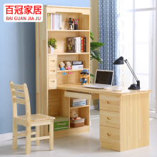 实木书桌转角电脑桌台式松木书桌书柜组合简约儿童学习桌带书架