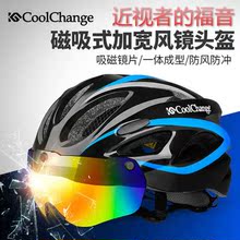 酷改骑行山地自行车磁吸式一体头盔带风镜大码超轻安全帽男女眼镜