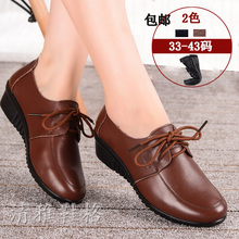 春秋中年真皮鞋40大码41圆头42中老年人单鞋中跟坡跟妈妈鞋女鞋43