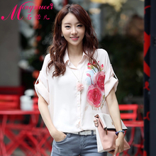 雪纺衫民族风衬衫女2015夏中长款上衣大码宽松女装七分袖印花衬衣