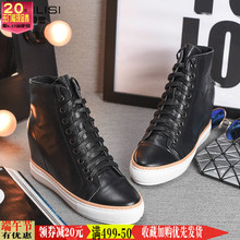 欧洲站2016新款秋季内增高女鞋真皮厚底松糕鞋休闲鞋女圆头高帮鞋