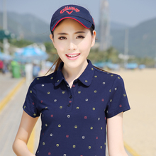 2017春夏新款纯棉印花有领短袖女t恤大码宽松显瘦休闲翻领上衣潮