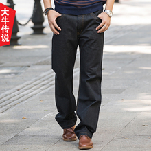 大牛传说 春夏款宽松直筒牛仔裤男 青年休闲深色大码弹力长裤子潮