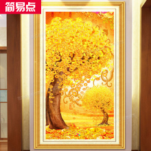 5d新款钻石画满钻玄关竖版摇钱树聚宝盆贴钻十字绣金色元宝发财树