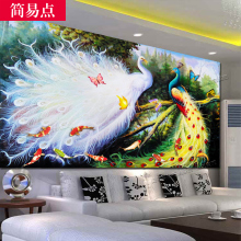 钻石画客厅花开富贵点砖石画孔雀魔方圆钻大幅满钻九鱼图简约现代