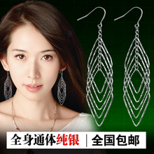 省检正品925纯银耳环耳坠长款欧美时尚流苏耳饰品大耳圈热销包邮