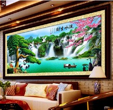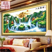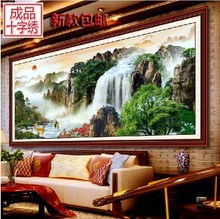 电脑机绣十字绣成品 新款2米客厅山水大画 流水生财迎客松财运版