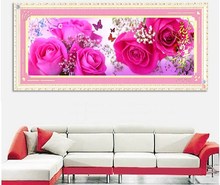 华晨电脑机绣十字绣成品 客厅餐厅玄关过道装饰画 粉红玫瑰成品