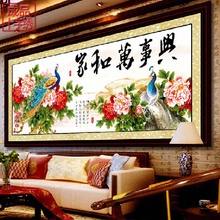 特价包邮电脑机绣十字绣成品 家和万事兴孔雀牡丹版成品
