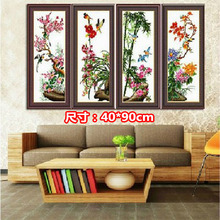 电脑植物花卉白色机绣十字绣成品 梅兰竹菊花鸟版 家居装饰 整套