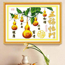十字绣成品 斜五福临门 黑福 家 寿字 恭喜发财 平安是福 铜钱福