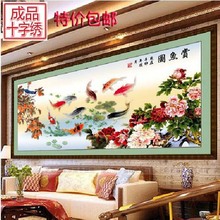 电脑机绣十字绣成品九鱼图合家富贵新款客厅大画九鱼聚财赏鱼图
