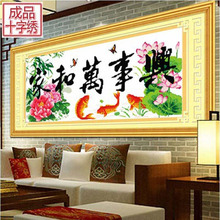 电脑机绣十字绣成品家和万事兴荷花鲤鱼客厅新款大画现货出售
