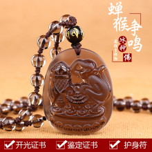 一马珠宝蝉猴争鸣黑曜石吊坠 属猴2017年开运吉祥物