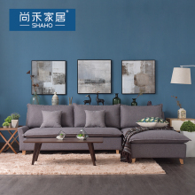 尚禾 北欧简约布艺沙发客厅组合家具黑胡桃木色家具客厅组合