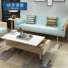 尚禾北欧实木茶几带储物日式升降原木色小户型功能方形茶几包邮