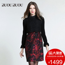 BuouBuou邦宝2016秋冬新品女装蕾丝连衣裙显瘦假两件OL气质淑女