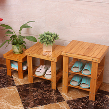 饰成家品楠竹高低换鞋凳置物架儿童凳田园实鞋架鞋柜穿鞋凳花架