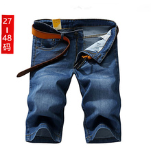 夏季薄款弹力松紧腰直筒宽松牛仔短裤男加肥加大码胖子肥佬5分裤