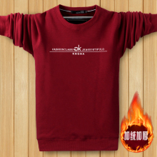 冬款男装加绒保暖长袖T恤男士加肥加大码纯棉圆领套头加厚卫衣潮