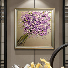 现代客厅玄关装饰画抽象油画壁画紫罗兰抽象壁画立体厚颜料手工画