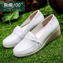 欣迎100护士鞋白色坡跟单鞋女牛筋底工作鞋美容院浅口小白鞋防滑
